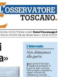 Non abituiamoci alla guerra – Toscana Oggi 29 marzo 2026